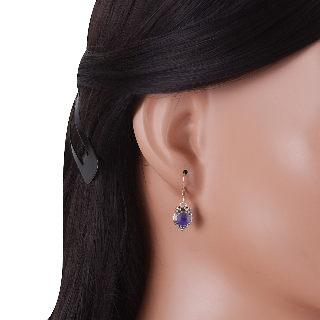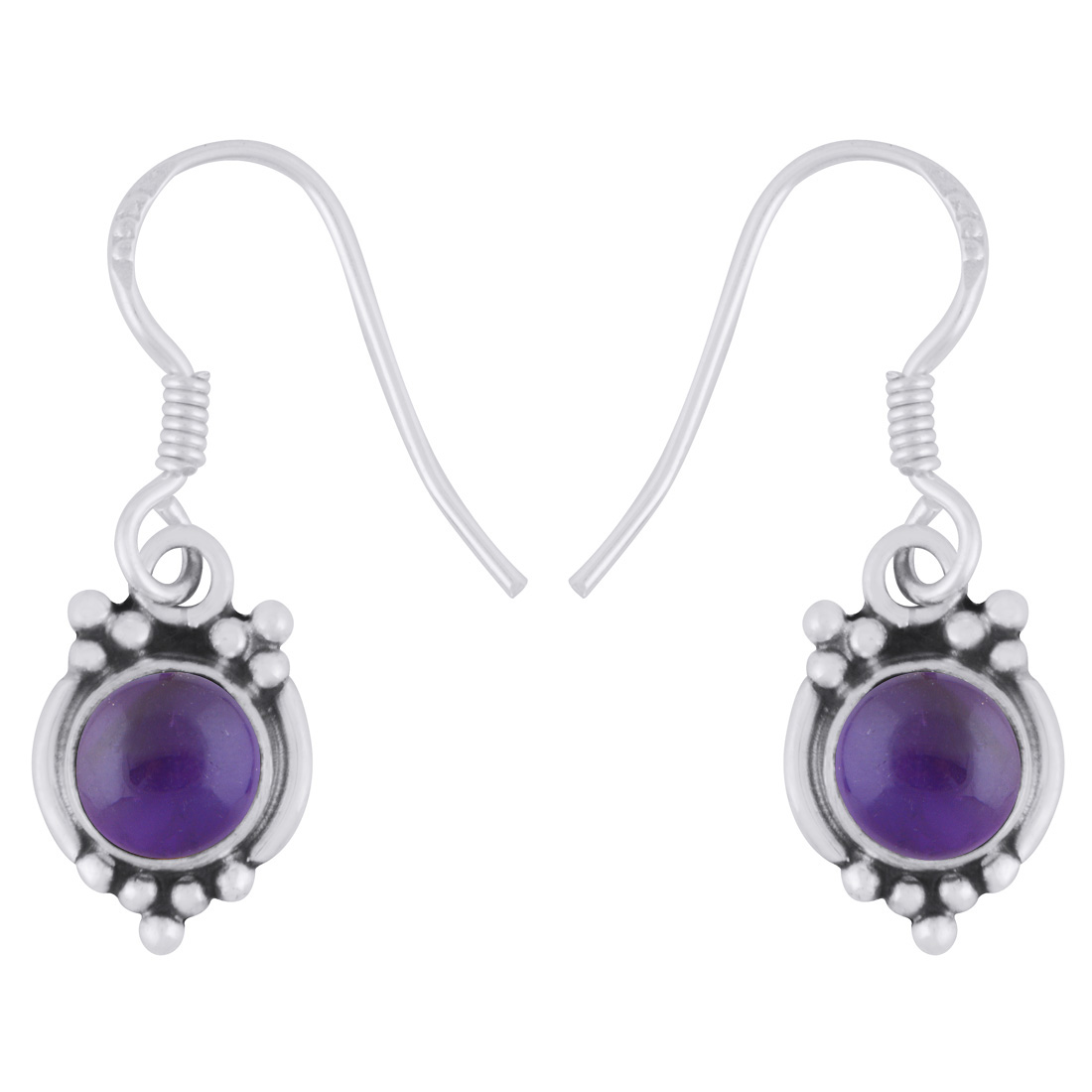 Gorgeous Rawa Work Pattern Around Amethyst Round Shape 925 Sterling Solid Silver Dangle Earrings