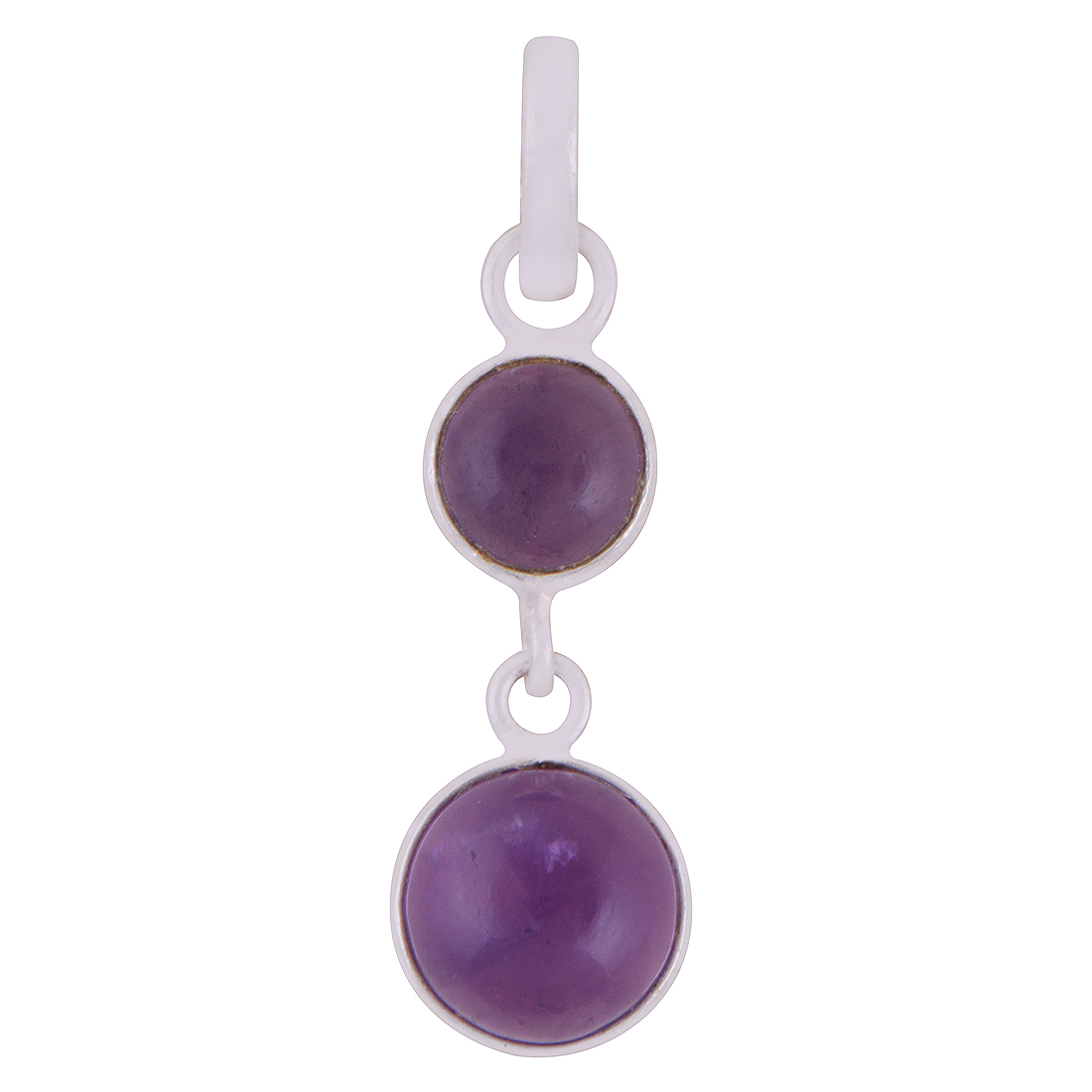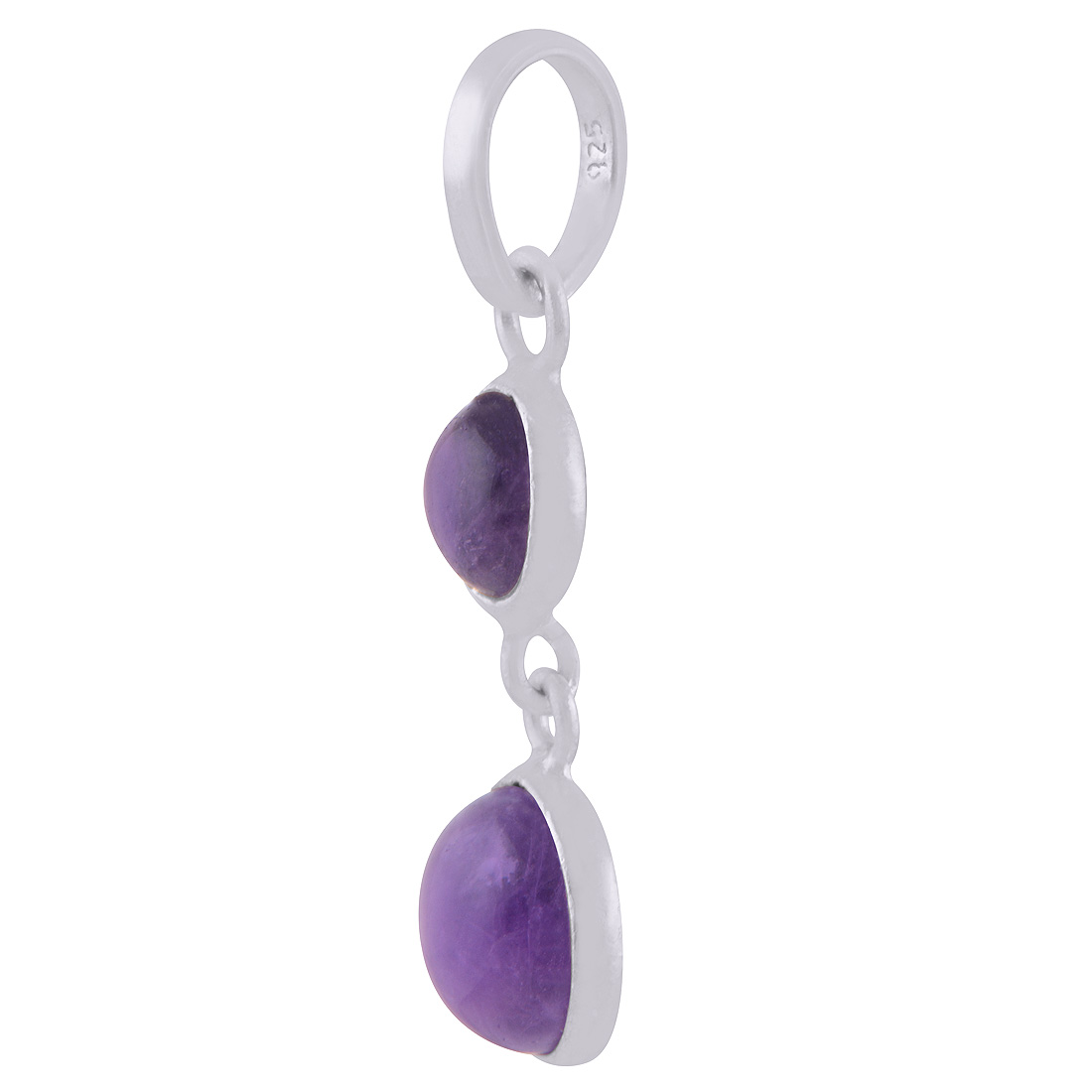 Gorgeous Two Stone Bezel Amethyst Round Shape 925 Sterling Solid Silver Pendant